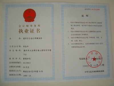 惠州方正会计师事务所于1999年10月经广东省财政厅批准,由原惠州市大亚湾会计师事务所改制设立。取得广东省财政厅颁发的44130011号注册会计师执业证书。惠州方正税务师事务所于2009年1月经省国税局批准设立,取得23388号执业证书。方正所拥有以注册会计师